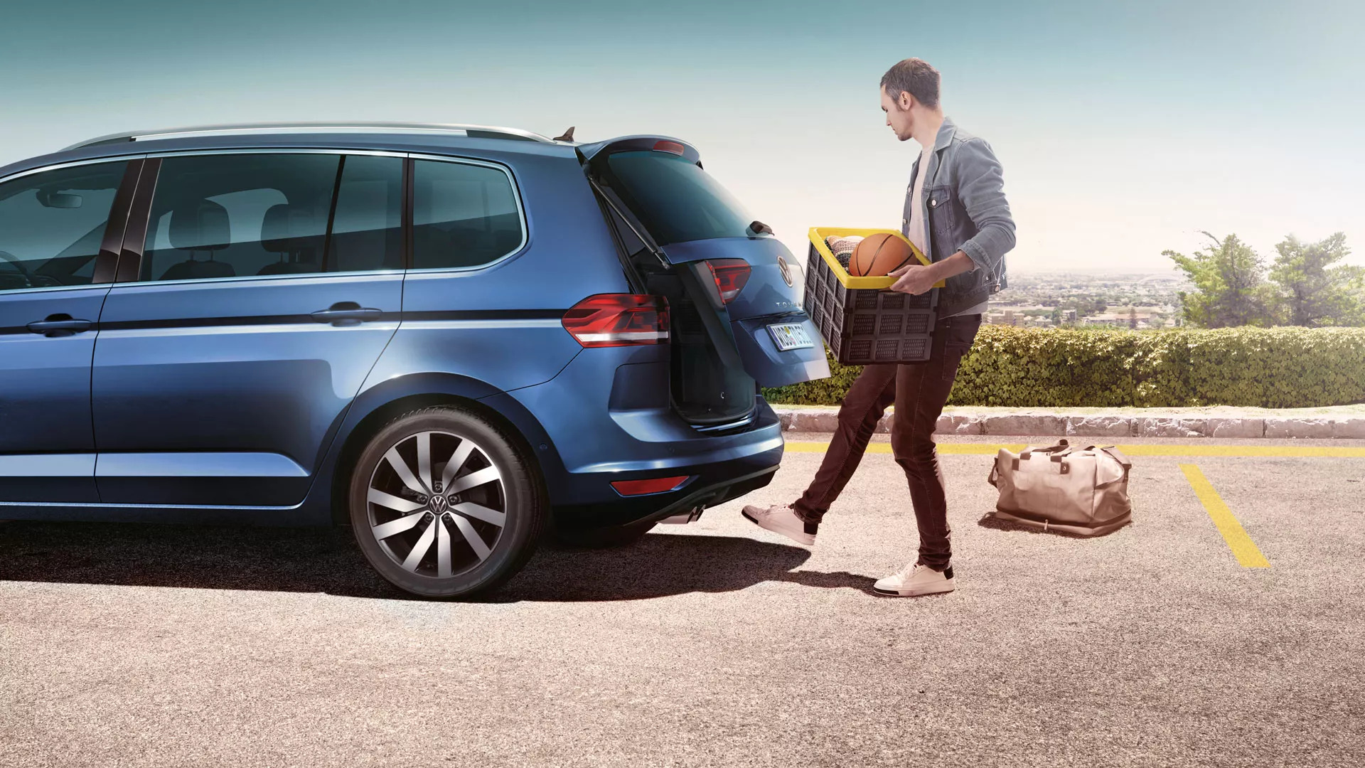 Se retrouver les bras chargés devant le coffre et ne pas avoir de main libre pour l’ouvrir... Cette situation vous semble familière ? La fonctionnalité ‘Easy Open & Close’, disponible en option dans le Pack Easy Access vous permet d’utiliser votre pied pour ouvrir le coffre. Le système détecte la clé se trouvant dans votre poche. Il ne vous suffit plus que d’un petit mouvement sous le coffre à bagages pour que celui-ci s’ouvre. Une simple pression sur un bouton à l’intérieur du coffre permet de le fermer tout aussi facilement. Le coffre à bagages est également l’un des points forts du Touran. Les sièges arrière peuvent être repliés séparément, offrant un volume pouvant atteindre 1 980 litres.